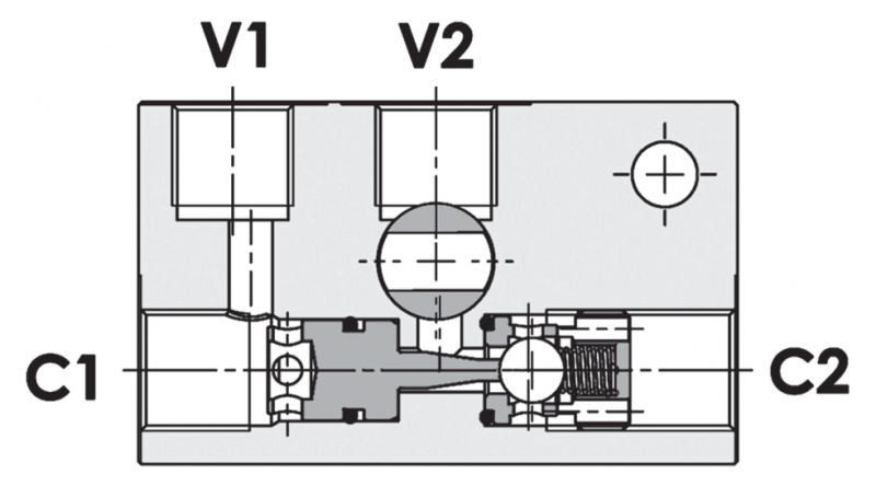 Valvola di blocco pilotata semplice bilanciata, montaggio in linea